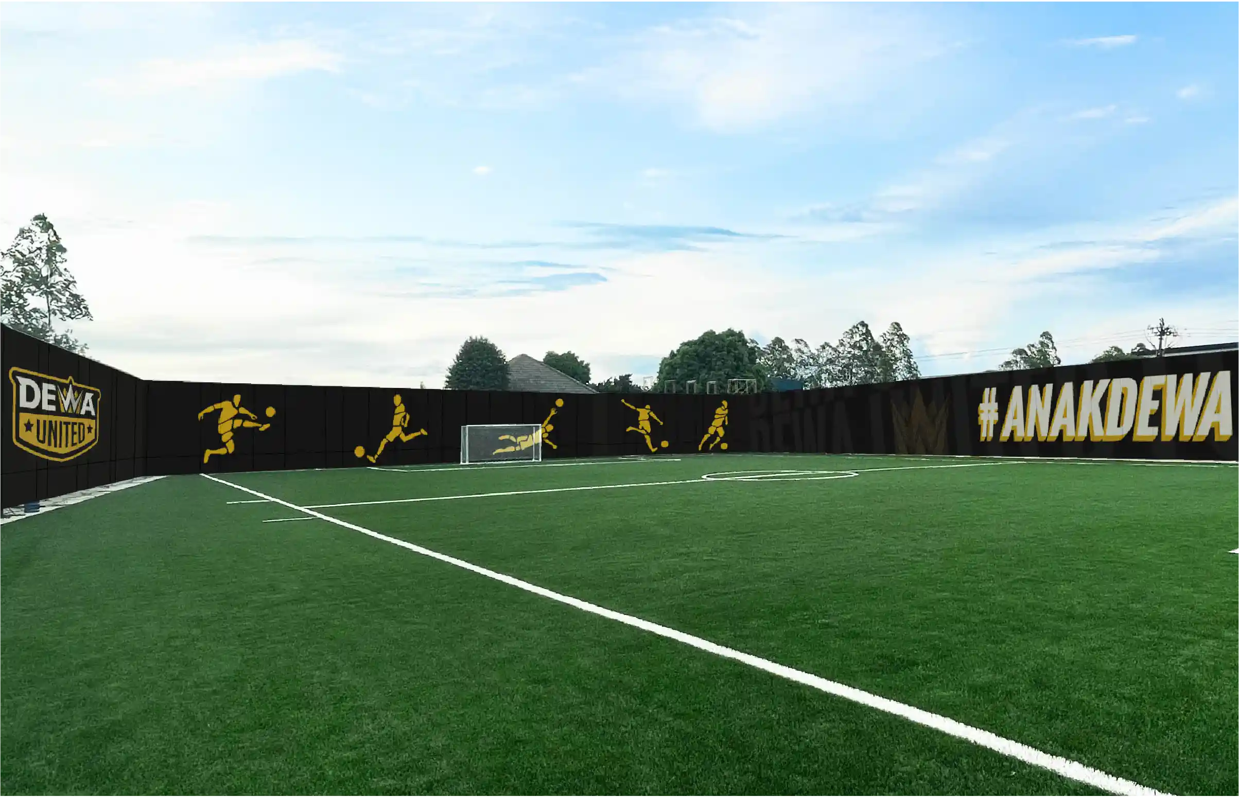 Dewa United Basecamp is a one-of-a-kind complex that unites Dewa United’s three powerhouse divisions: Football, Basketball, and Esports. Located in Tangerang, Banten, this compound is designed to meet every need of an athlete — from training and daily living to match day performance while providing a space for visitors and supporters who want to join the journey by watching the matches or buying their apparels.