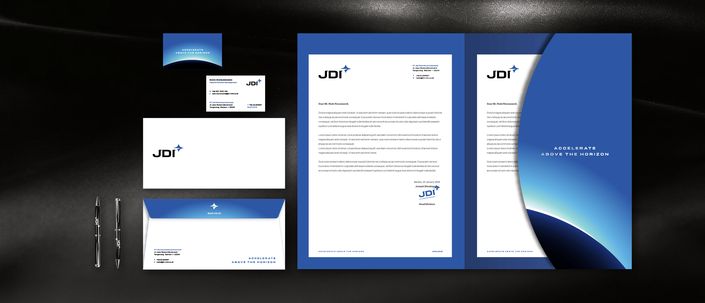 The tagline that was crafted, “Accelerate Above the Horizon”, expresses the brand’s resilience and its ambition to stand above the competitive landscape. This principle carries into the overall look, where minimal design creates a sleek, professional presence across all implementations
